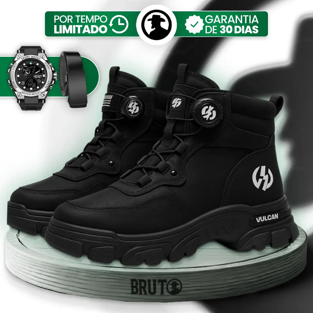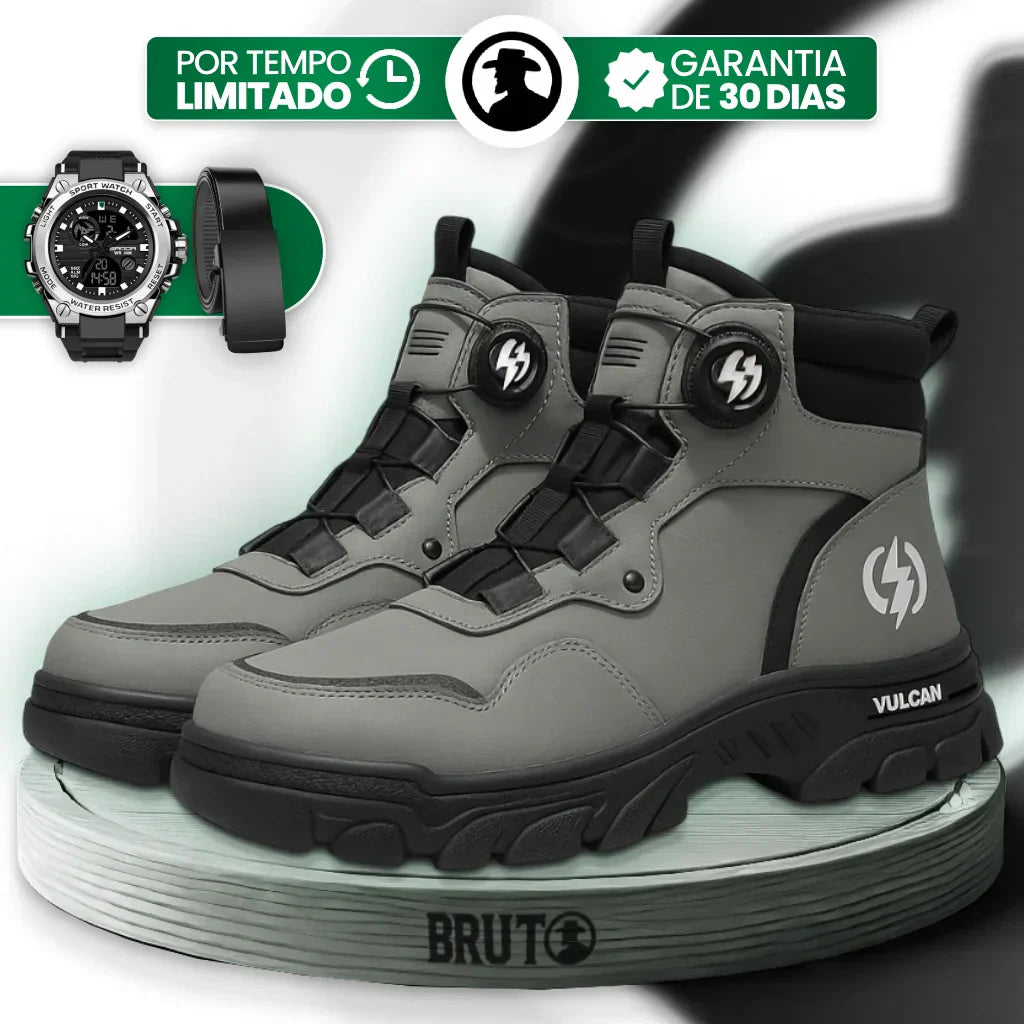 Bota Masculina Ortopédica de Cano Médio Vulcan com Amarração por Polia em Couro Legítimo e Poliuretano + BRINDES