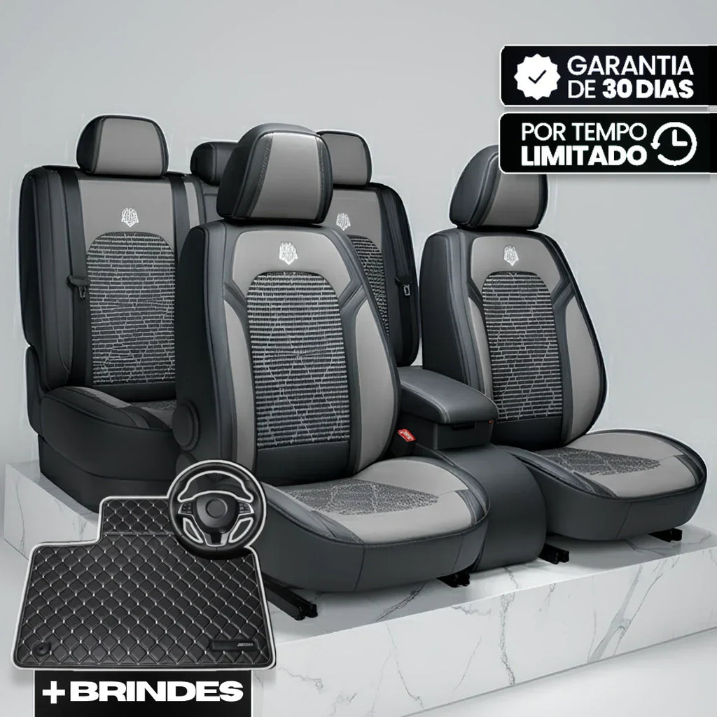 Capa Completa Dominus Automotiva Térmica em Couro Legítimo, Seda Gelada e Malha Extra Forte com Espuma de Memória + Tapete e Capa de Volante GRÁTIS