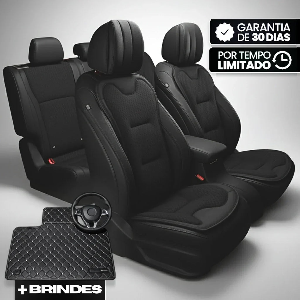 Chega de banco sofrendo à toa. Com 82% Poliéster 600D, 13% Nylon reforçado e 5% Couro Napa, o Kit Titan transforma seu carro num território sem frescura. Protege de verdade contra sujeira, desgaste e desvalorização. Sua presença é sentida em qualquer roda — seu carro fala por você e todo mundo para pra ouvir.